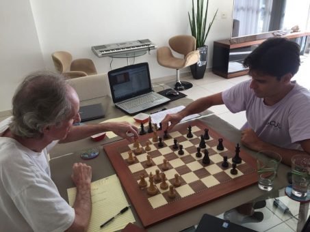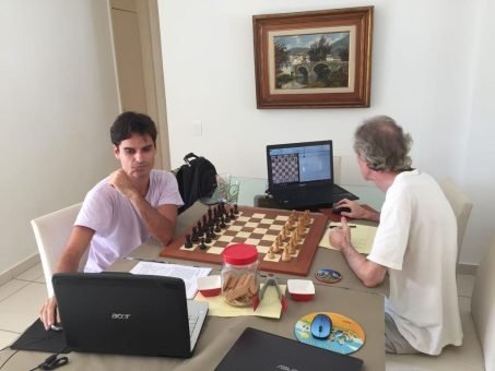 Jogando partida de treinamento com o amigo MI Eduardo Limp.